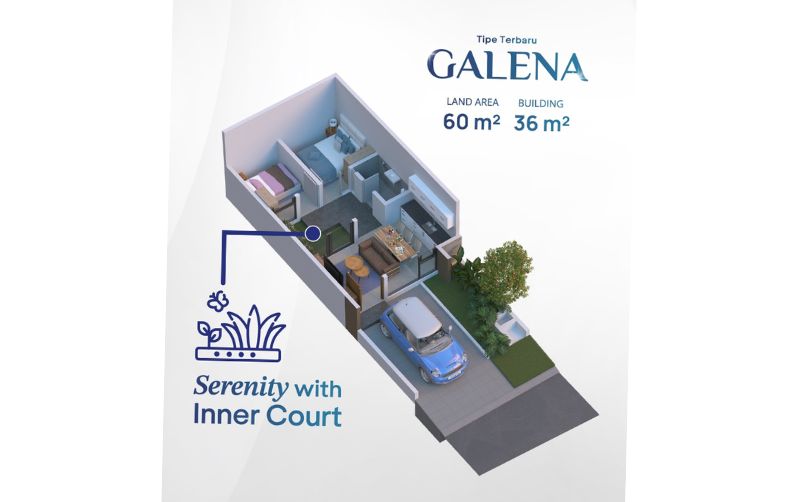 Baik rumah tipe Garnet maupun Galena, keduanya adalah hunian 1 lantai diantara hunian-hunian 2 lantai yang mendominasi kawasan perumahan elit ini.