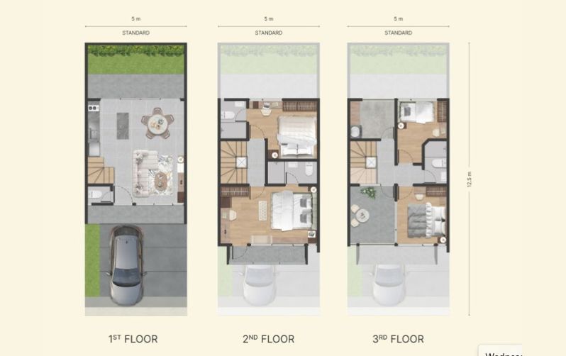 Tipe Standard – Unit dengan lebar standar 5 meter, tetap menawarkan semua fasilitas lengkap dengan harga lebih terjangkau.